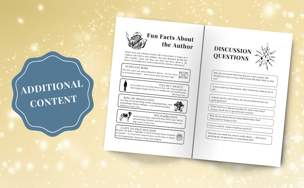 Fly to Neverland with Peter Pan! J.M. Barrie’s Peter Pan is a magical adventure full of pirates, fairies, and the joy of never growing up. This beloved classic children's book features the original illustrations by F.D. Bedford, bonus content about the author, and thoughtful discussion questions to spark imagination and conversation.