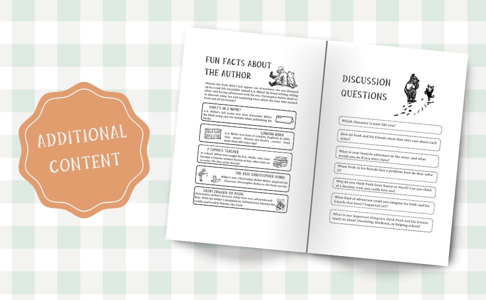 Rediscover the timeless adventures of Winnie, Piglet, Tigger, and all your favorite friends in this classic edition of Winnie the Pooh. This edition features original illustrations, fun facts about the author and discussion questions.